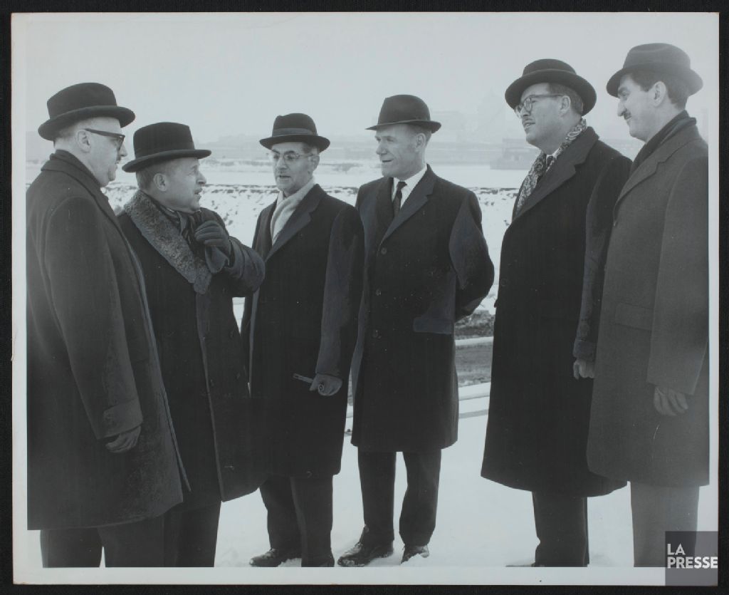 - Le dossier illustre Mitchell Sharp accompagné de Jean Drapeau, Pierre Dupuy, Jean-Paul Deschatelets, Robert F. Shaw et Jean-Luc Pépin
