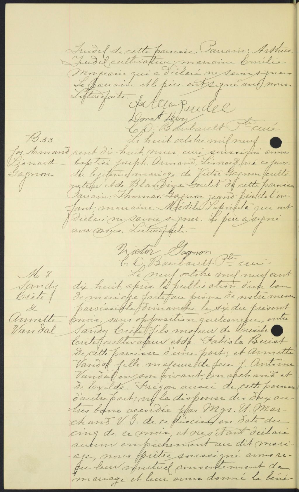 - Cette série regroupe les registres originaux de l'état civil, lesquels contiennent les enregistrements de baptêmes, de mariages et de sépultures consignés par le curé ou son représentant au cours de la période concernée par les documents.Outre les renseignements à caractère généalogique que nous pouvons y puiser, cette série peut constituer une source documentaire importante pour toute étude-statistique ou comparative sur les conditions de vie à différentes époques (mortalité infantile, espérance de vie) ou pour toute recherche portant sur l'occupation des terres (lieu de résidence), sur le mode de vie (métiers et professions, statut et âge des époux), sur les classes sociales (titres des parties impliquées, témoins/amis/parents présents lors d'un mariage), sur des évènements spéciaux (quelques mentions dans les sépultures) et sur des sujets à incidence médicale tels les maladies héréditaires (cause du décès)
