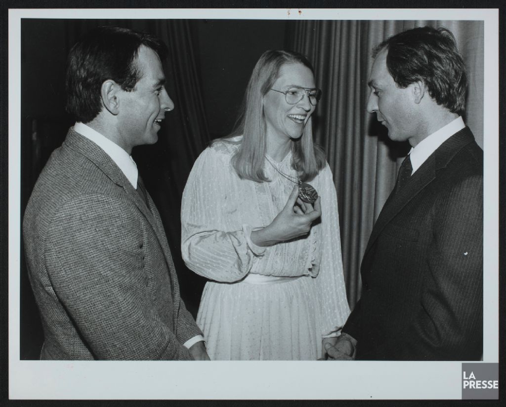 - Le dossier illustre l'athlète olympique accompagnée d'Alwyn Morris et Guy Lafleur.