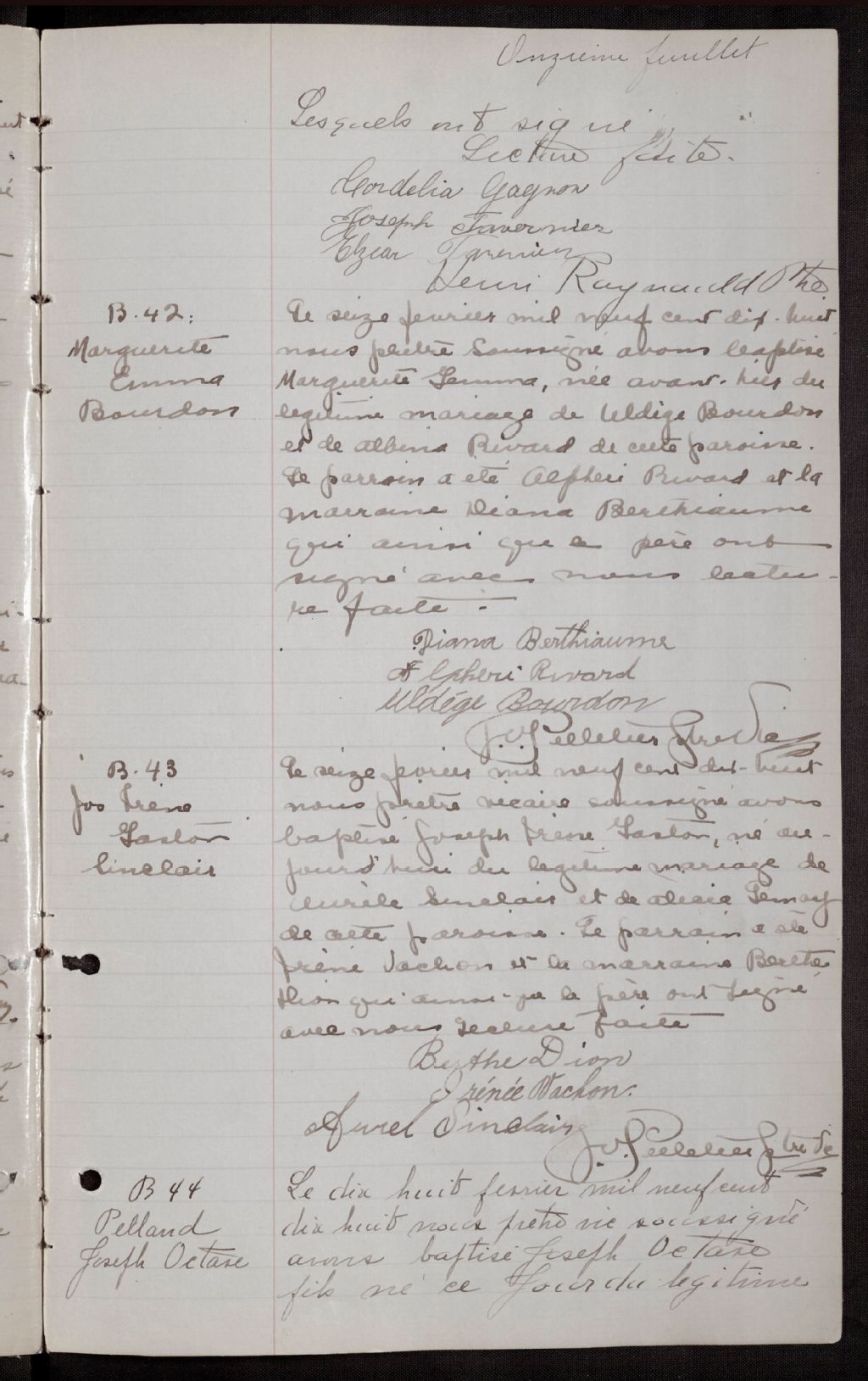 Notre-Dame-du-Perpétuel-Secours, 1906-1921, Archives nationales à Montréal, Fonds Cour supérieure. District judiciaire de Montréal. État civil, (06M,CE601,S239).