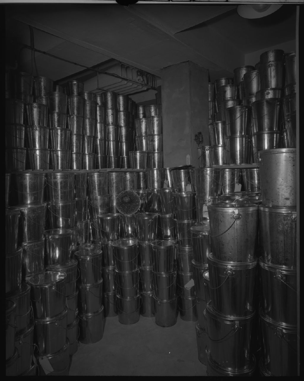 Les chambres froides de l'entrepôt frigorifique à Saint-Pierre, Île d'Orléans, 1954, Archives nationales à Québec, Fonds Ministère de la Culture et des Communications, (03Q,E6,S7,SS1,D6,P652-54H), Neuville Bazin.