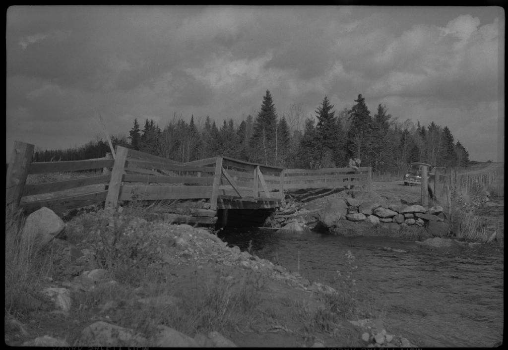 Pont traversant la rivière Chevreuil, concession Saint-Georges à Sainte-Agathe-de-Lotbinière, 1954, Archives nationales à Québec, Fonds Ministère de la Culture et des Communications, (03Q,E6,S7,SS1,D6,P762-54H), Jacques Vaillancourt.