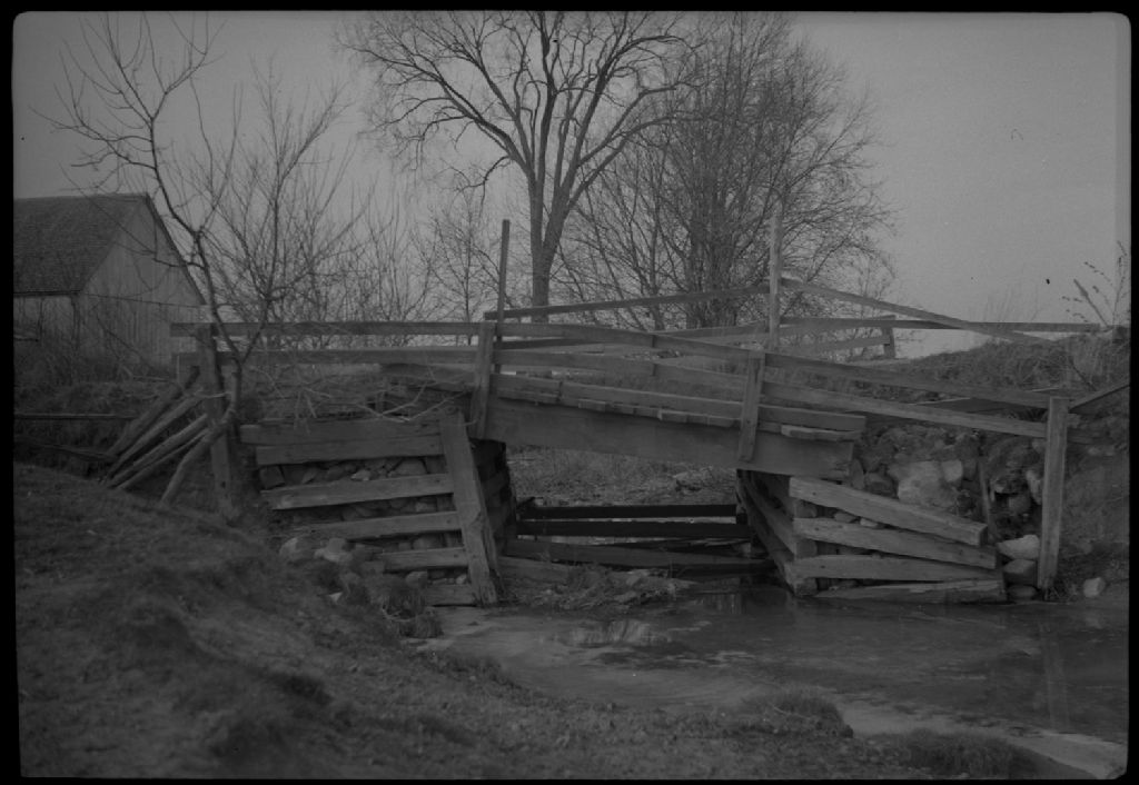 Pont traversant le ruisseau Bouthillet à Saint-Simon, comté de Bagot, 1954, Archives nationales à Québec, Fonds Ministère de la Culture et des Communications, (03Q,E6,S7,SS1,D6,P938-54H), Jacques Vaillancourt.