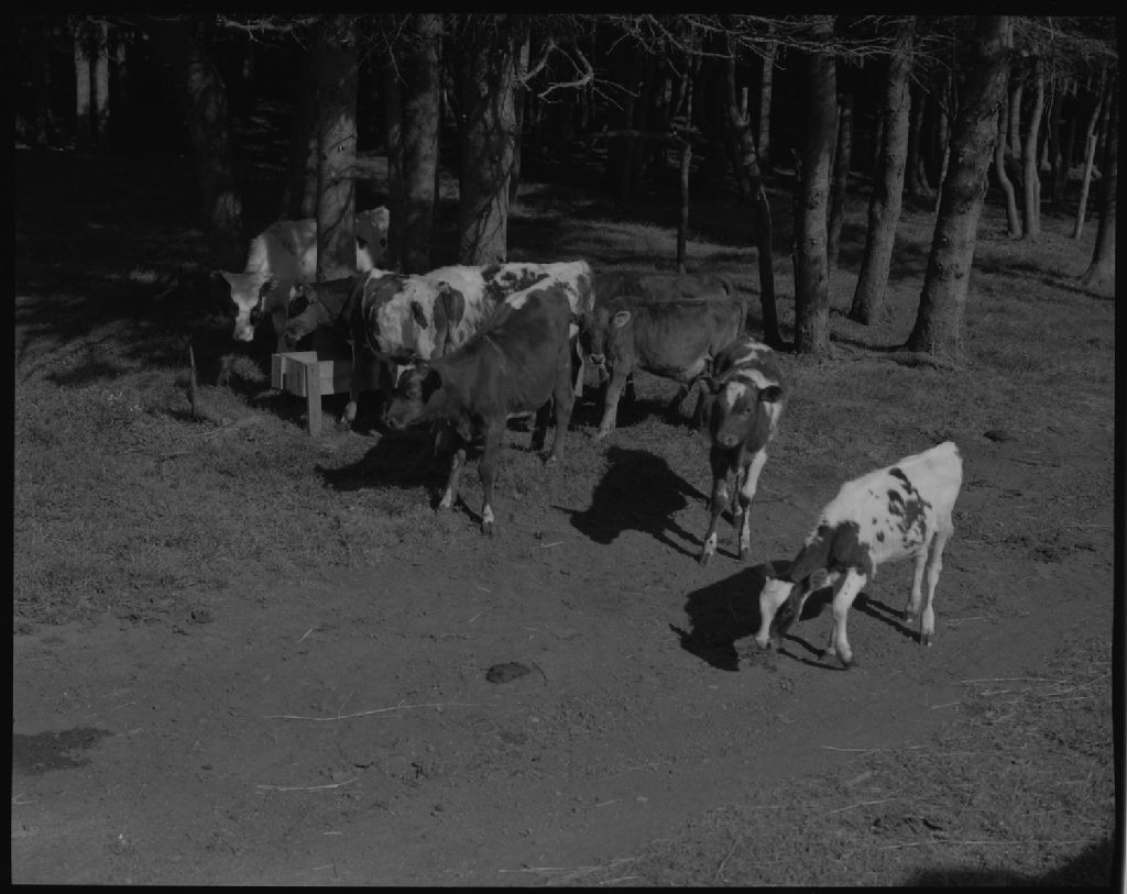 Jeune bétail au bosquet à l'hôpital de la Garde, Cap-aux-Meules