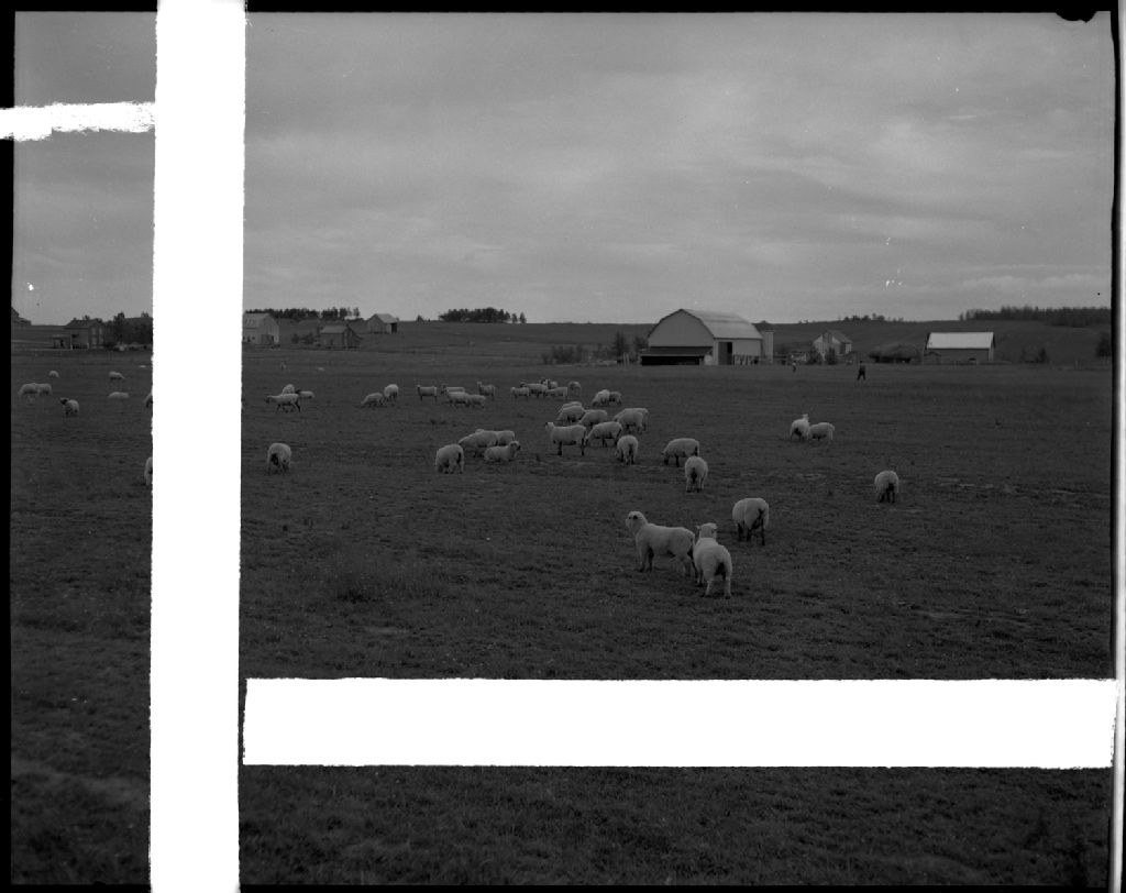 Moutons au pâturage et constructions de ferme chez Albert Marchand à Clerval