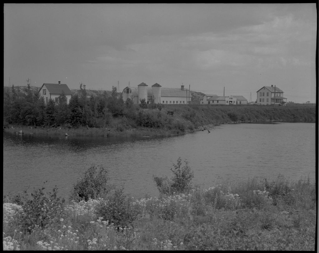 Vue d'ensemble de la Ferme Trudel Inc. à Hauterive, 1954, Archives nationales à Québec, Fonds Ministère de la Culture et des Communications, (03Q,E6,S7,SS1,D6,P1395-54H), Omer Beaudoin.
