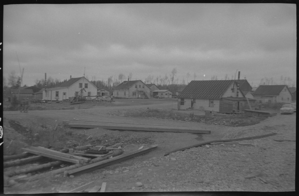 Pont en construction sur la rivière Bell à Quévillon, 1954, Archives nationales à Québec, Fonds Ministère de la Culture et des Communications, (03Q,E6,S7,SS1,D6,P1521-54H), J. C. Careau.