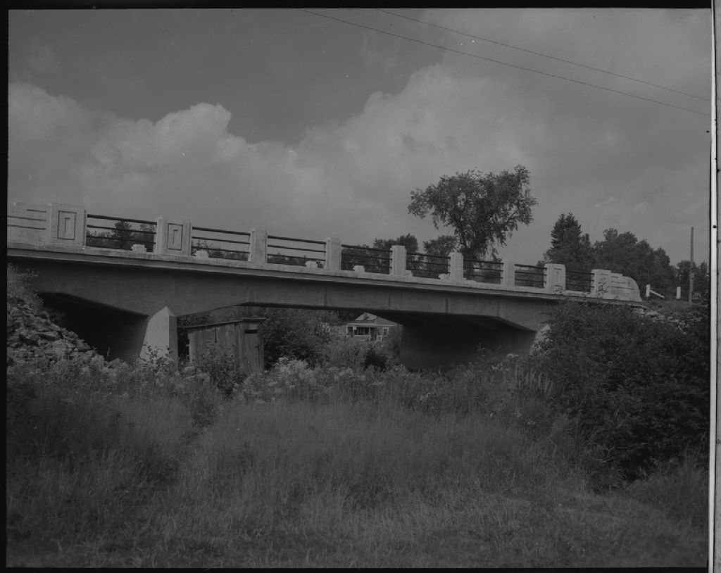 Pont sur la route 11 près de Labelle, 1954, Archives nationales à Québec, Fonds Ministère de la Culture et des Communications, (03Q,E6,S7,SS1,D6,P1620-54H), Paul Carpentier.