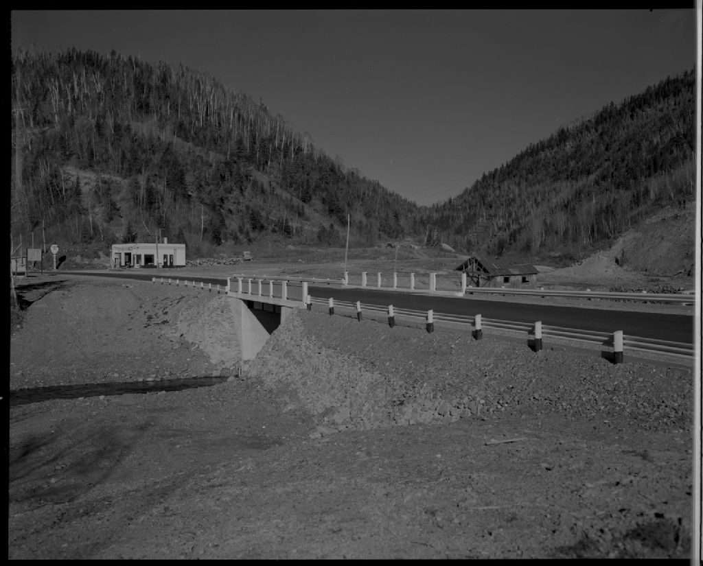 Pont sur la rivière Clarck à Saint-André, comté de Bonaventure, 1954, Archives nationales à Québec, Fonds Ministère de la Culture et des Communications, (03Q,E6,S7,SS1,D6,P1731-54H), Paul Carpentier.