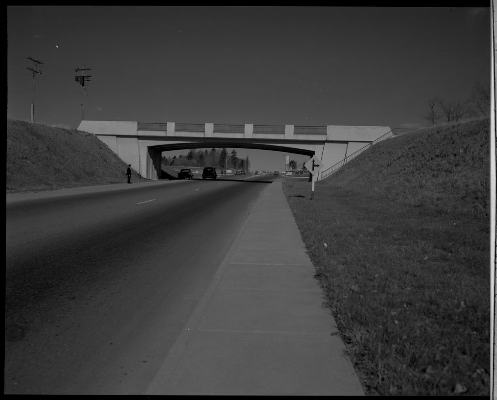 Viaduc sur le chemin de Cap-Rouge près du pont de Québec, 1954, Archives nationales à Québec, Fonds Ministère de la Culture et des Communications, (03Q,E6,S7,SS1,D2365,P1747-54H), Paul Carpentier.