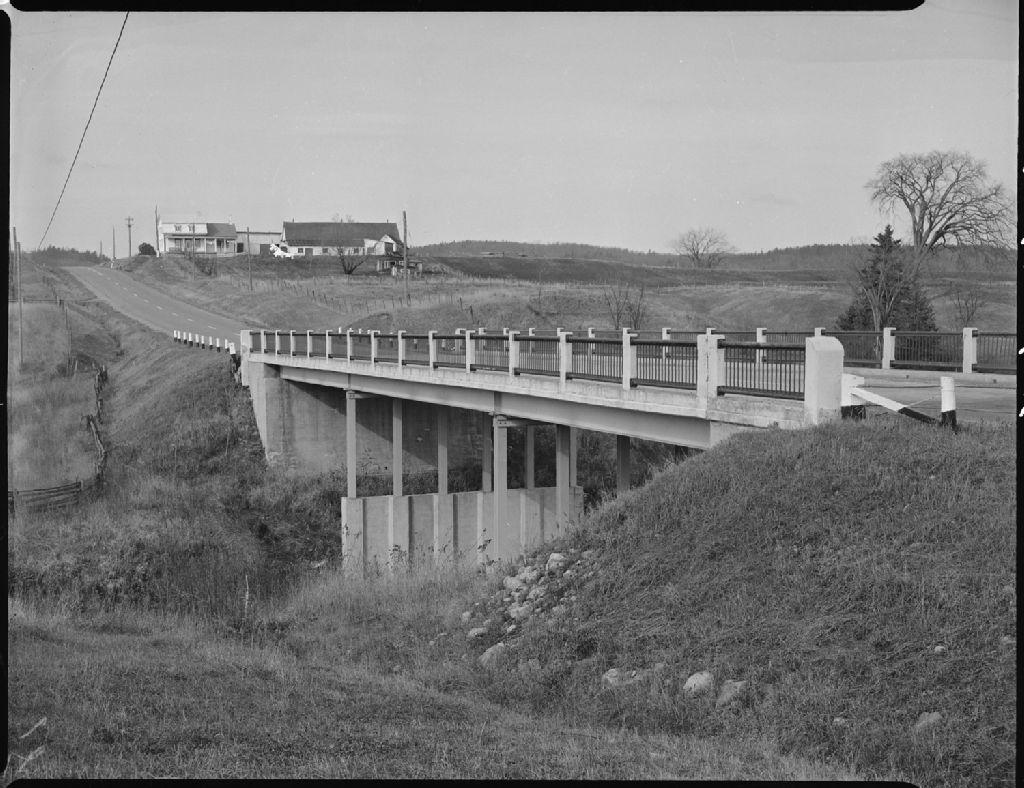 Pont sur la rivière Blanche à Saint-Ambroise-de-Kildare, 1954, Archives nationales à Québec, Fonds Ministère de la Culture et des Communications, (03Q,E6,S7,SS1,D2451,P2045-54H), Paul Carpentier.