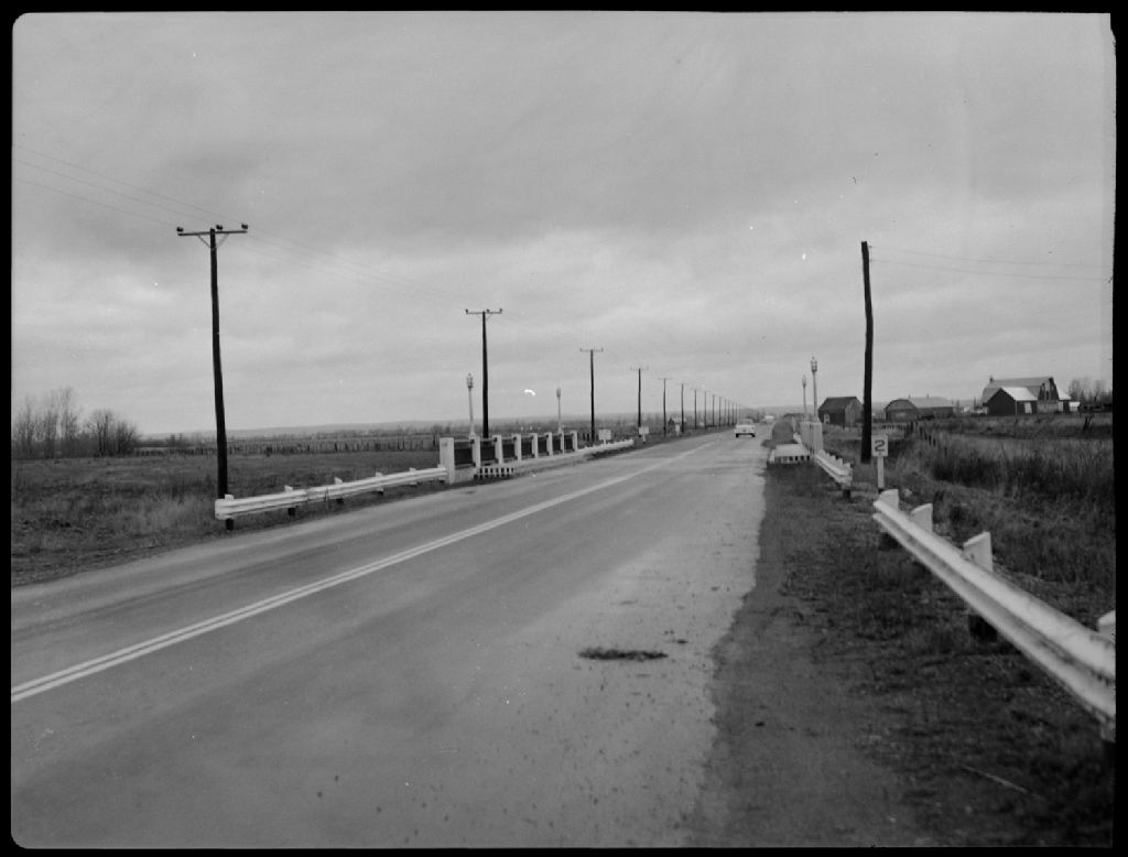 Pont sur la rivière Chaloupe à Berthierville, 1954, Archives nationales à Québec, Fonds Ministère de la Culture et des Communications, (03Q,E6,S7,SS1,D2466,P2079-54H), Paul Carpentier.