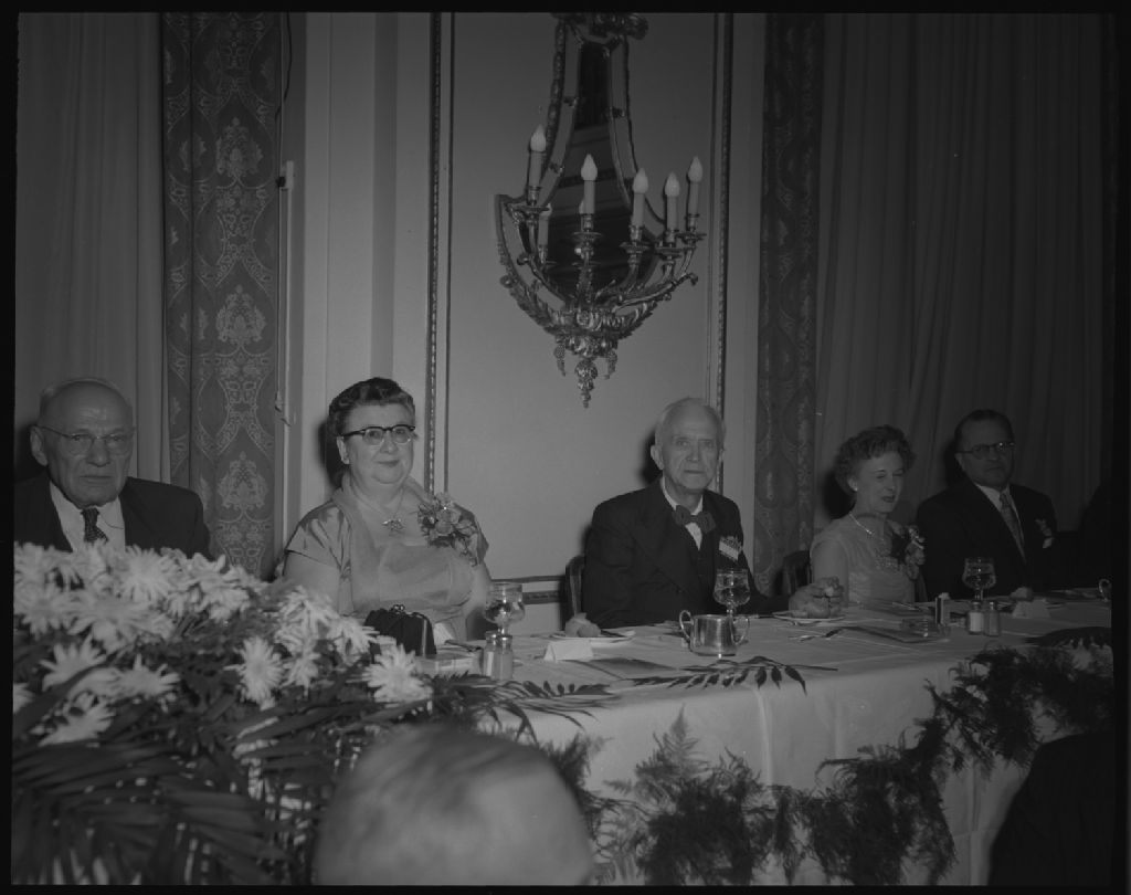 Banquet du congrès international des Commissions des accidents du travail au château Frontenac, Québec, 1954, Archives nationales à Québec, Fonds Ministère de la Culture et des Communications, (03Q,E6,S7,SS1,D671-54H,P671-54H), Neuville Bazin.