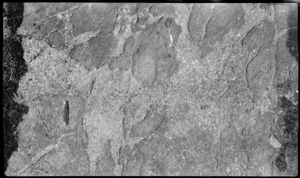 Pyroxenite gris foncé avec intrusions de pegmatite blanche, canton Aldfield, comtés de Pontiac et de Gatineau