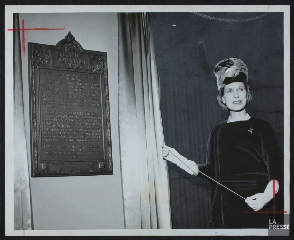 - Le dossier illustre la veuve du fils de Sir William C. Van Horne qui dévoile une plaque commémorative à la mémoire de celui-ci