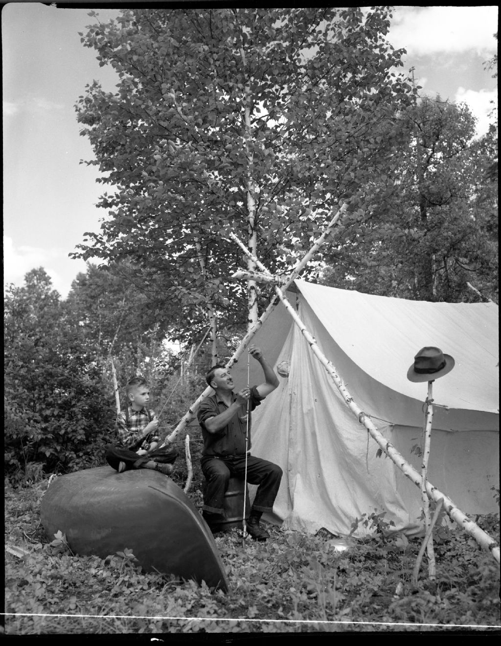Guide autochtone et jeune garçon en excursion de pêche au Parc de la Vérendrye