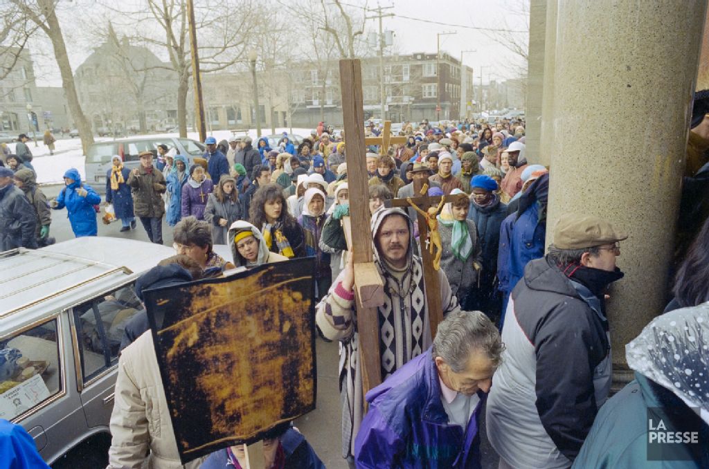 - Le dossier concerne la marche du pardon, le poisson d'avril de Daniel Green, de la Société pour vaincre la pollution (SVP), et un homme-sandwich mettant de l'argent dans les parcomètres du centre-ville