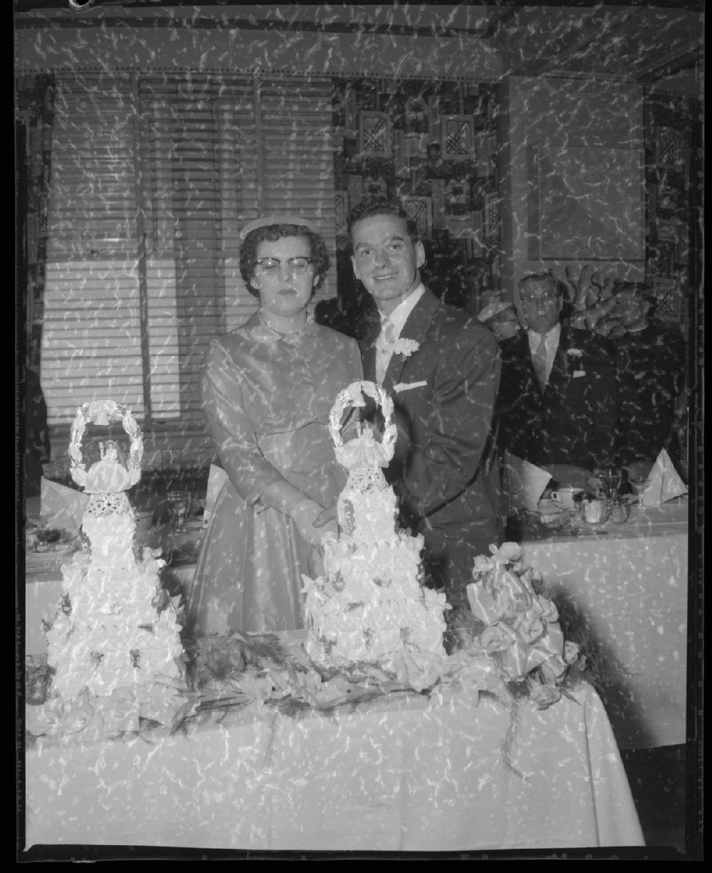 Mariage double de Germain Labonté-Madeleine Brûlé et Aimé Charbonneau-Claire Brûlé, 25 août 1956, Archives nationales à Gatineau, Fonds Champlain Marcil, (07H,P174,S1,D9421), Attribuée à Champlain Marcil.