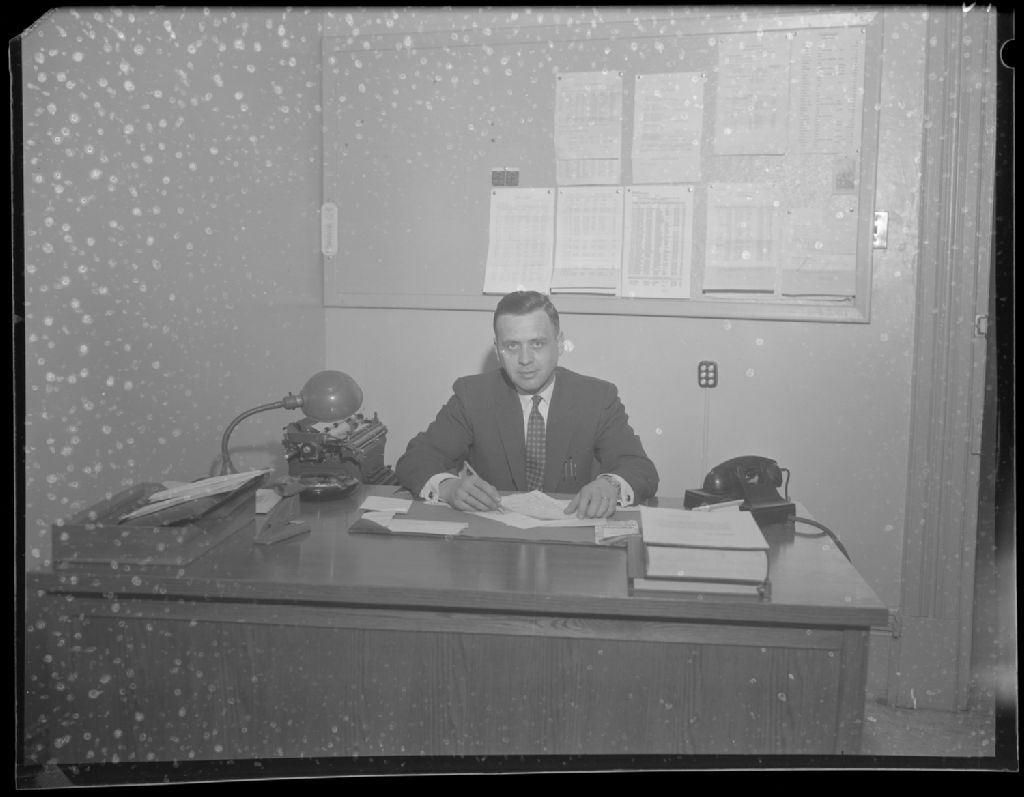 Détective Deschênes, Sûreté du Québec, Hull, 25 mars 1958, Archives nationales à Gatineau, Fonds Champlain Marcil, (07H,P174,S1,D13883), Attribuée à Champlain Marcil.