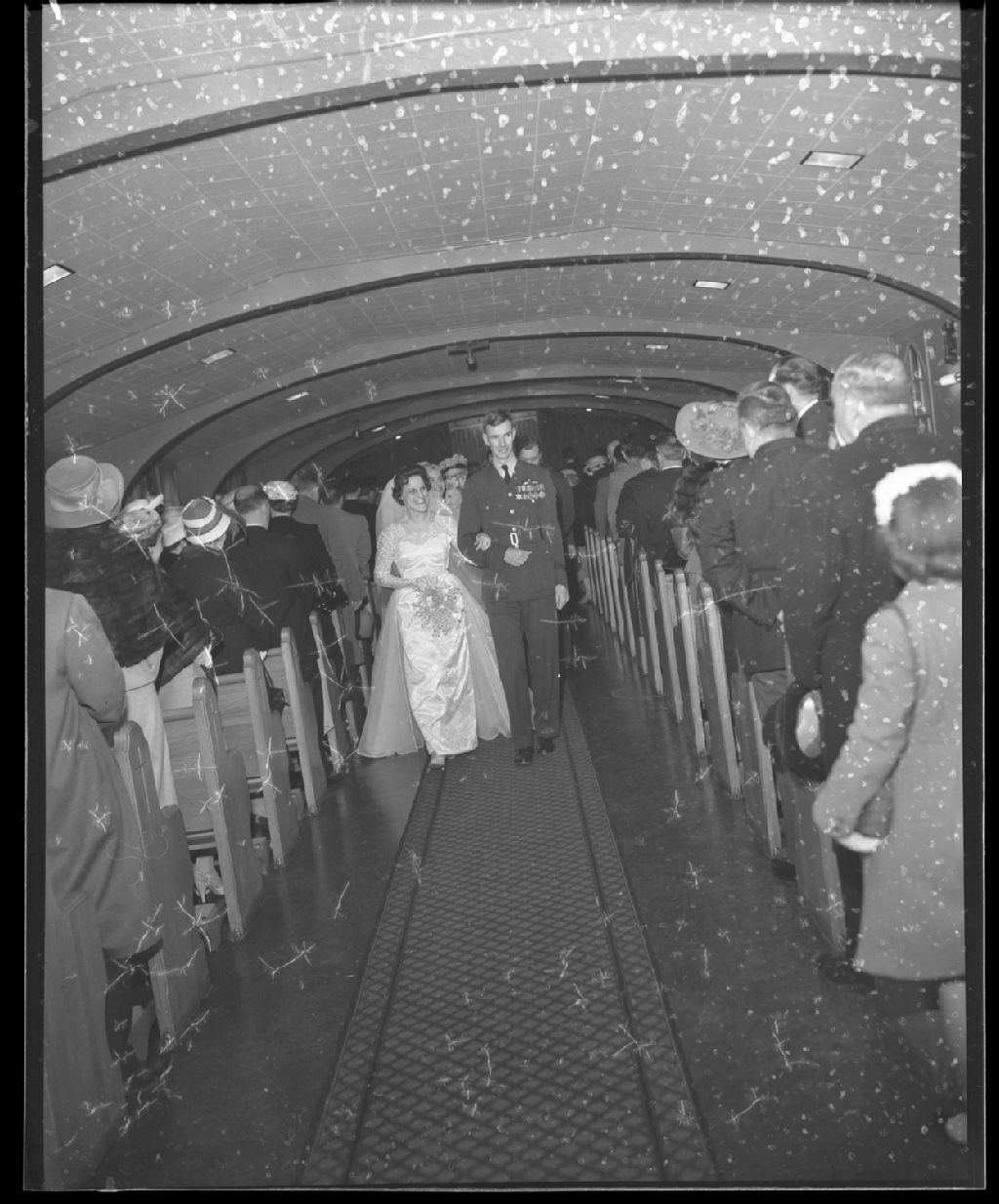 Mariage Raby et McGregor, 3 mai 1958, Archives nationales à Gatineau, Fonds Champlain Marcil, (07H,P174,S1,D14221), Attribuée à Champlain Marcil.