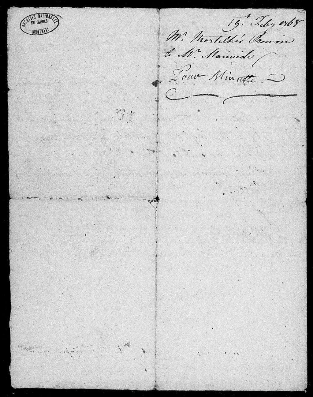Marin Jehanne, 1768-1786, Archives nationales à Montréal, Fonds Cour supérieure. District judiciaire de Saint-Hyacinthe. Greffes de notaires, (06M,CN602,S41).