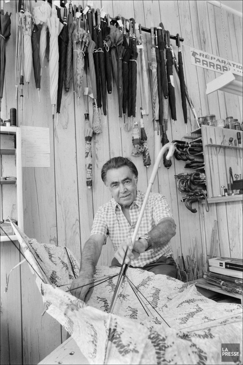 - Le dossier porte sur la boutique de réparation de parapluies de Léon Cardegna, sur les travaux de la murale sur l'édifice de La Presse et sur une entrevue du docteur Paul Letondal.