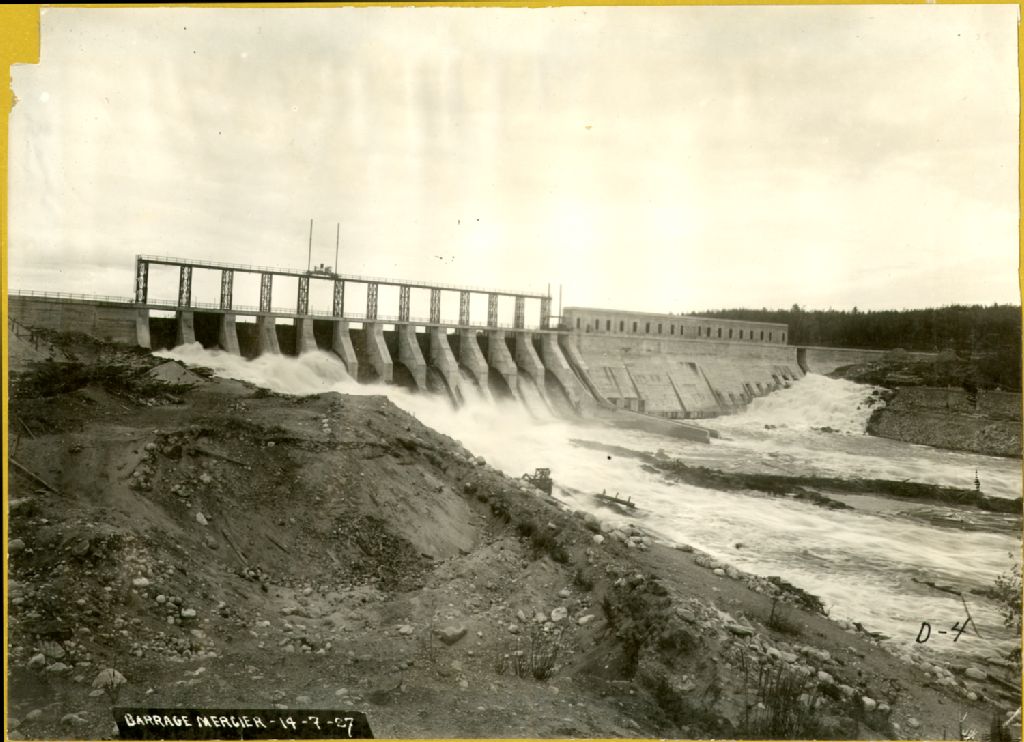 Rivière Gatineau - Barrage Mercier, 14 juillet 1927, Archives nationales à Québec, Fonds Ministère de l'Environnement et de la Lutte contre les changements climatiques, (03Q,E57,S44,SS1,D91,PD4), Photographe non identifié.