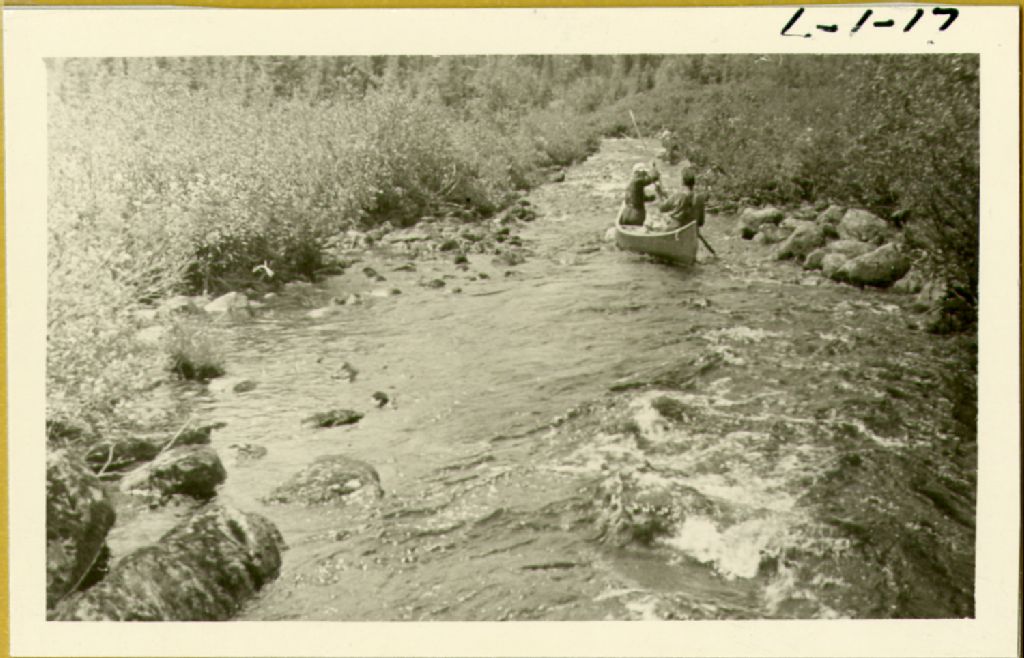 Rivière Chibougamau - Hommes descendant la rivière en canot