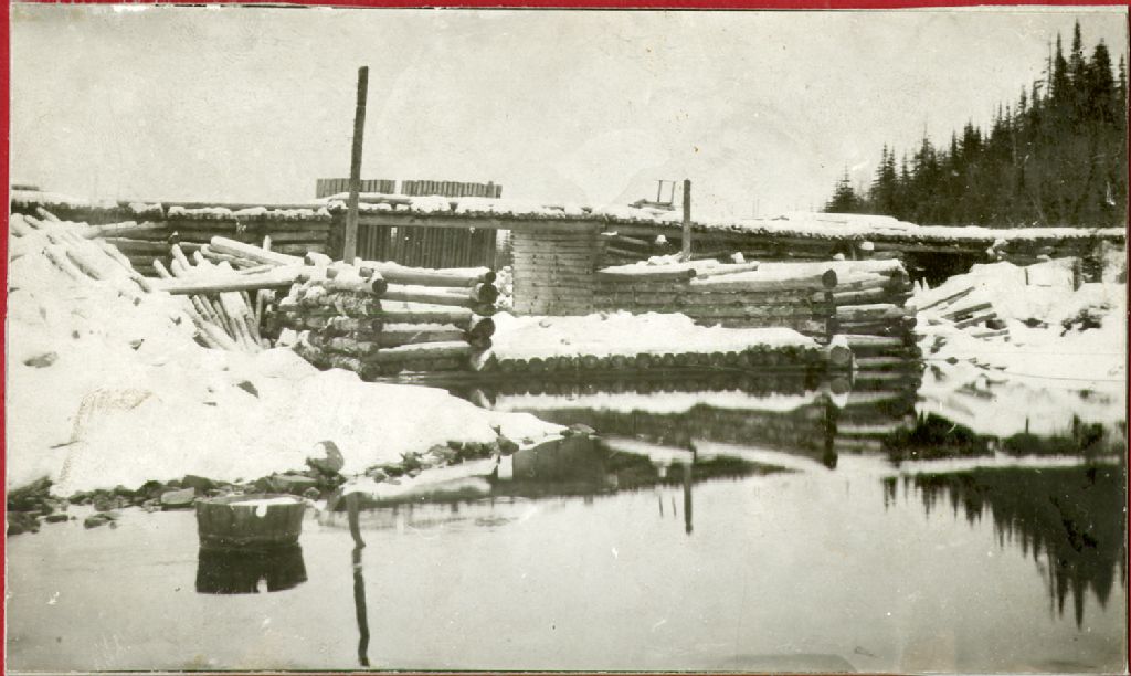 Rivière Brûlé - Vieux barrage, 1917, Archives nationales à Québec, Fonds Ministère de l'Environnement et de la Lutte contre les changements climatiques, (03Q,E57,S44,SS1,D142,PZ14), Photographe non identifié.