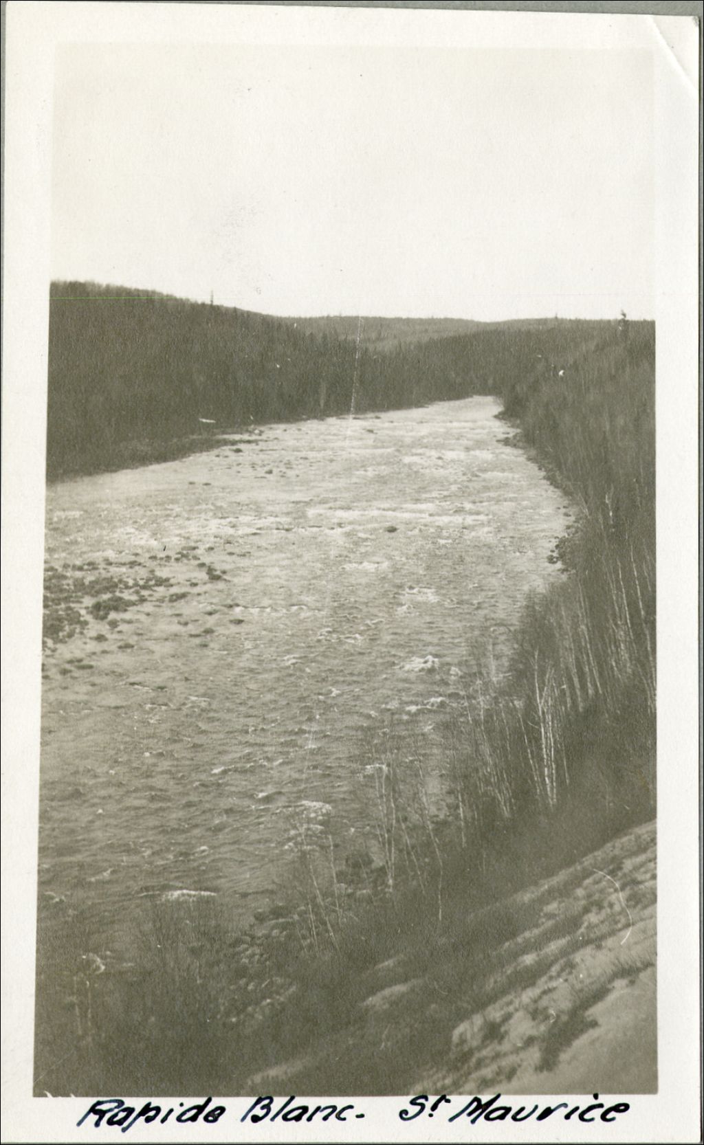 Rivière Saint-Maurice - Du rapide Allard à La Tuque - Rapide Blanc, [Vers 1920], Archives nationales à Québec, Fonds Ministère de l'Environnement et de la Lutte contre les changements climatiques, (03Q,E57,S44,SS1,D76,PZ54), Photographe non identifié.