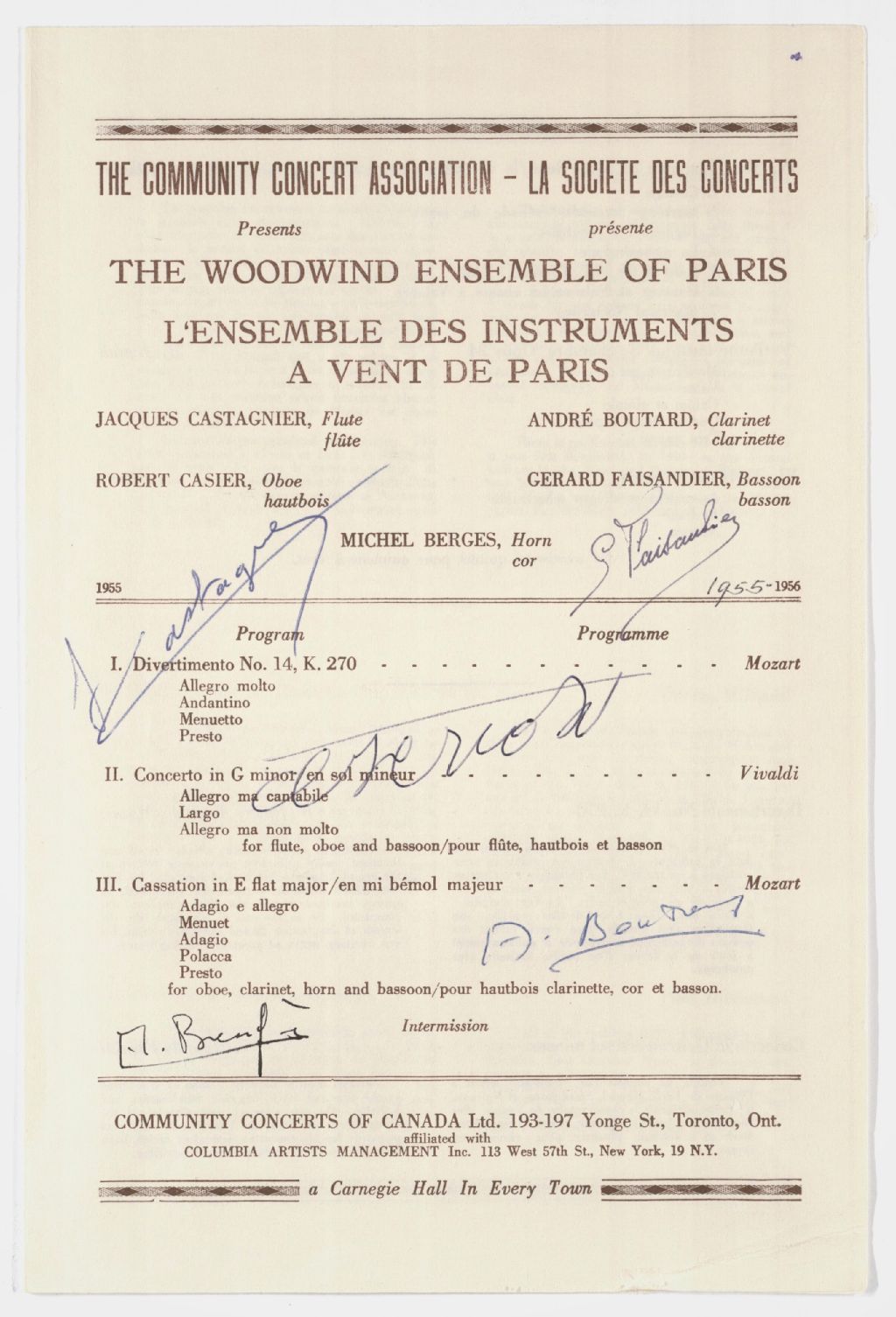 - Programme de la société des concerts de Chicoutimi. Autographié par les membres de l'Ensemble des instruments à vent de Paris