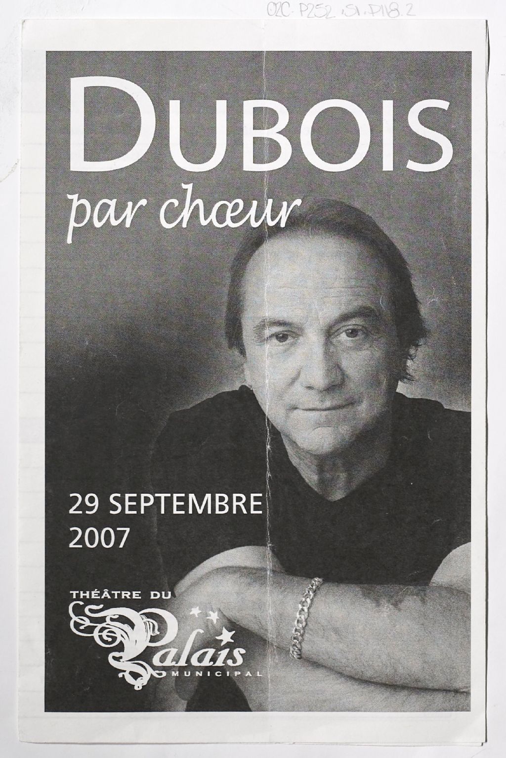 Programme de Claude Dubois, 2007-09-29, Archives nationales à Saguenay, Gabrielle Gaudreault, (02C,P252,D1,P118.2).