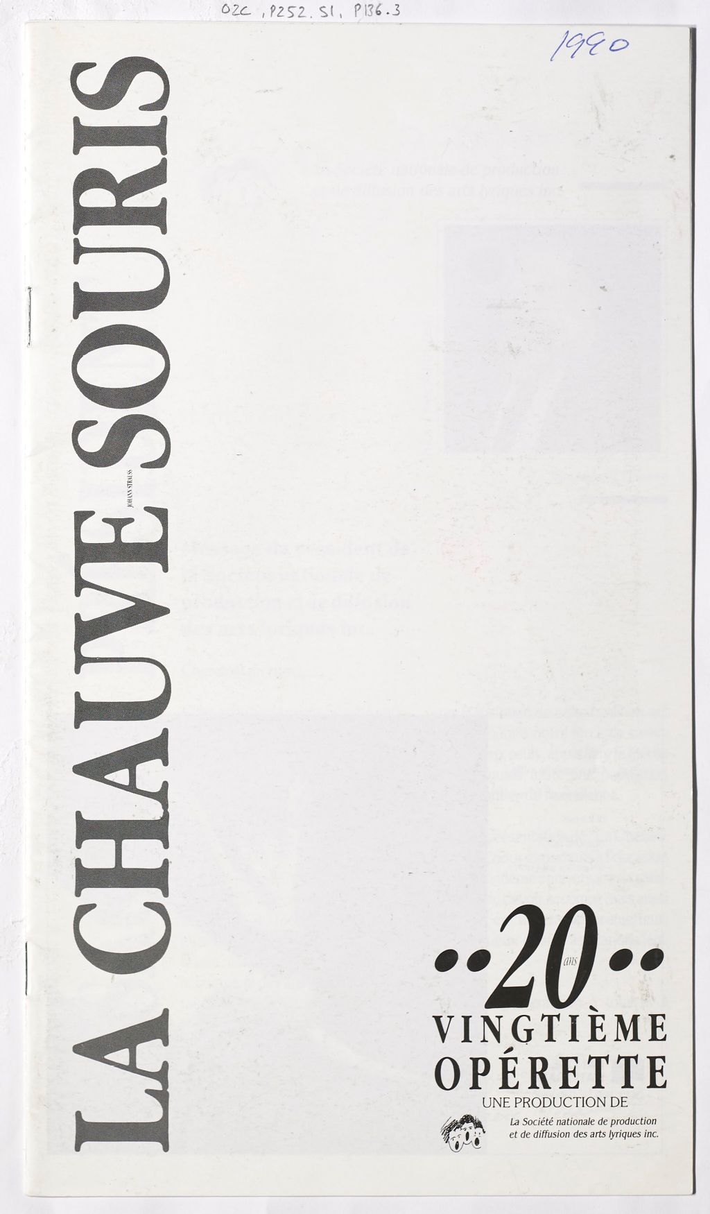 - Programme de l'opérette La Chauve-souris, présenté par la Société nationale de production et diffusion des arts lyriques Inc