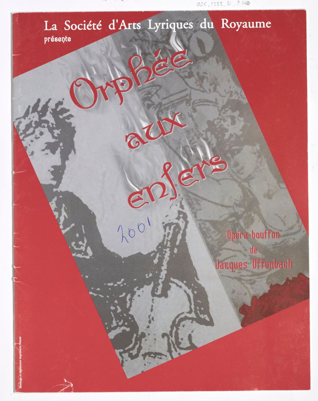 - Programme de l'opéra Orphée aux enfers de Jacques Offenbach, présenté par la Société d'art lyrique du Royaume, Auditorium Dufour, février 2001