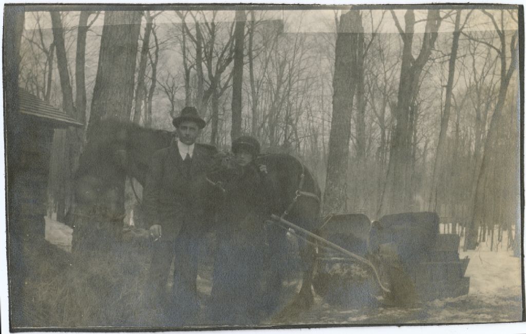 Couple devant une carriole, [Vers 1910-vers 1915], Archives nationales à Québec, Collection Fernand Chevalier, (03Q,P711,S4,P1), Photographe non identifié.