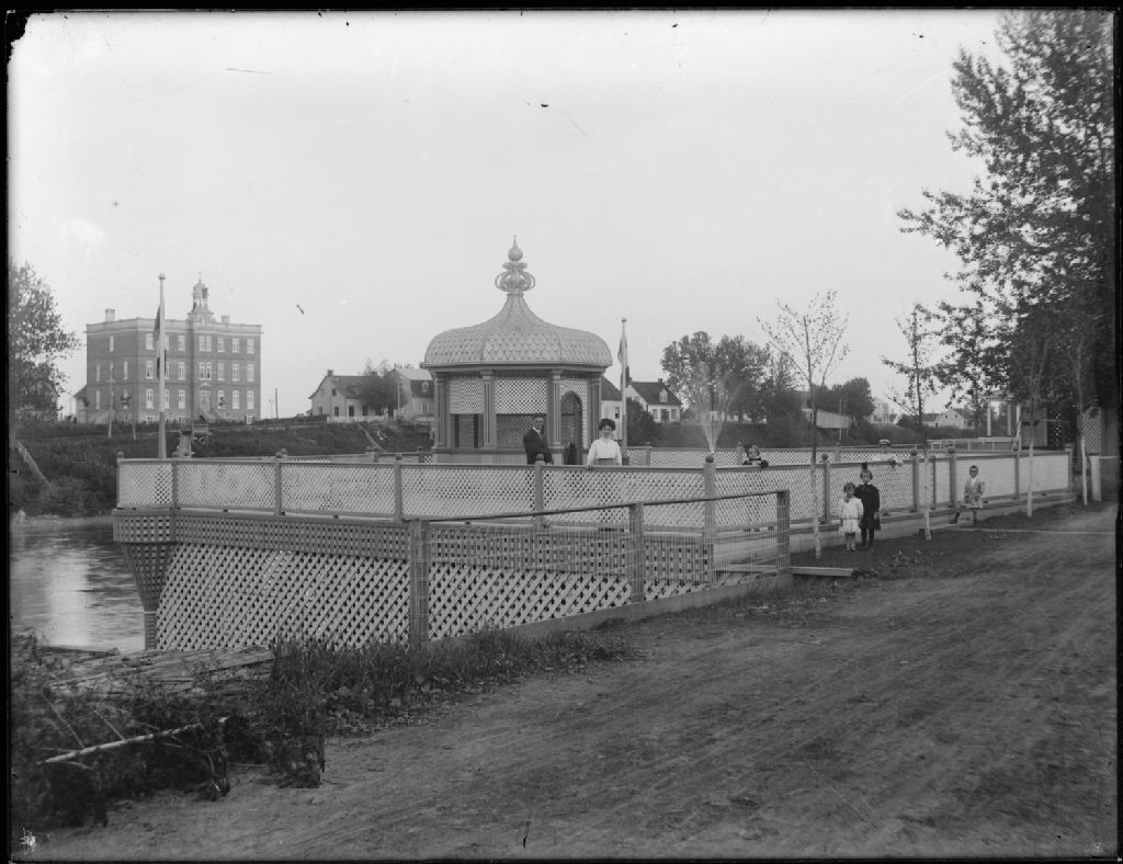 Ancien parc de la rue Tessier, le long de la rivière Sainte-Anne. On peut y voir le collège Saint-Louis-de-Gonzague. Saint-Casimir