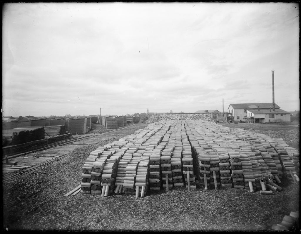 Moulin à bois Grandbois, anciennement situé au confluent des rivières Noire et Sainte-Anne (aujourd'hui la jonction des rues Tessier et du Chemin de l'Île Grandbois) [Vers 1910-vers 1915], [Vers 1910-vers 1915], Archives nationales à Québec, Collection Fernand Chevalier, (03Q,P711,S3,P8), Photographe non identifié.
