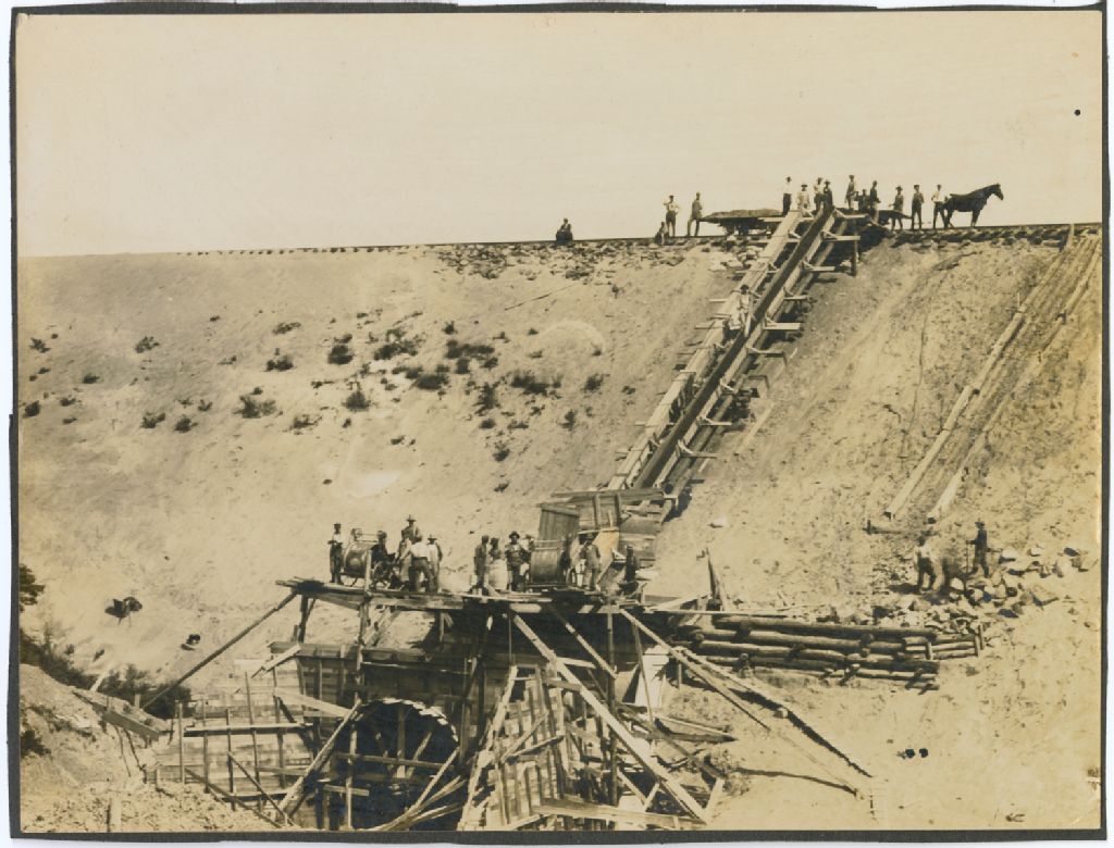 Construction d'un tunnel ferroviaire. On y voit des ouvriers., [Vers 1910-vers 1915], Archives nationales à Québec, Collection Fernand Chevalier, (03Q,P711,S3,P20), Photographe non identifié.