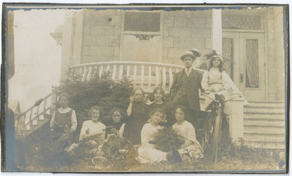 Famille Trottier devant la Banque nationale de Saint-Casimir