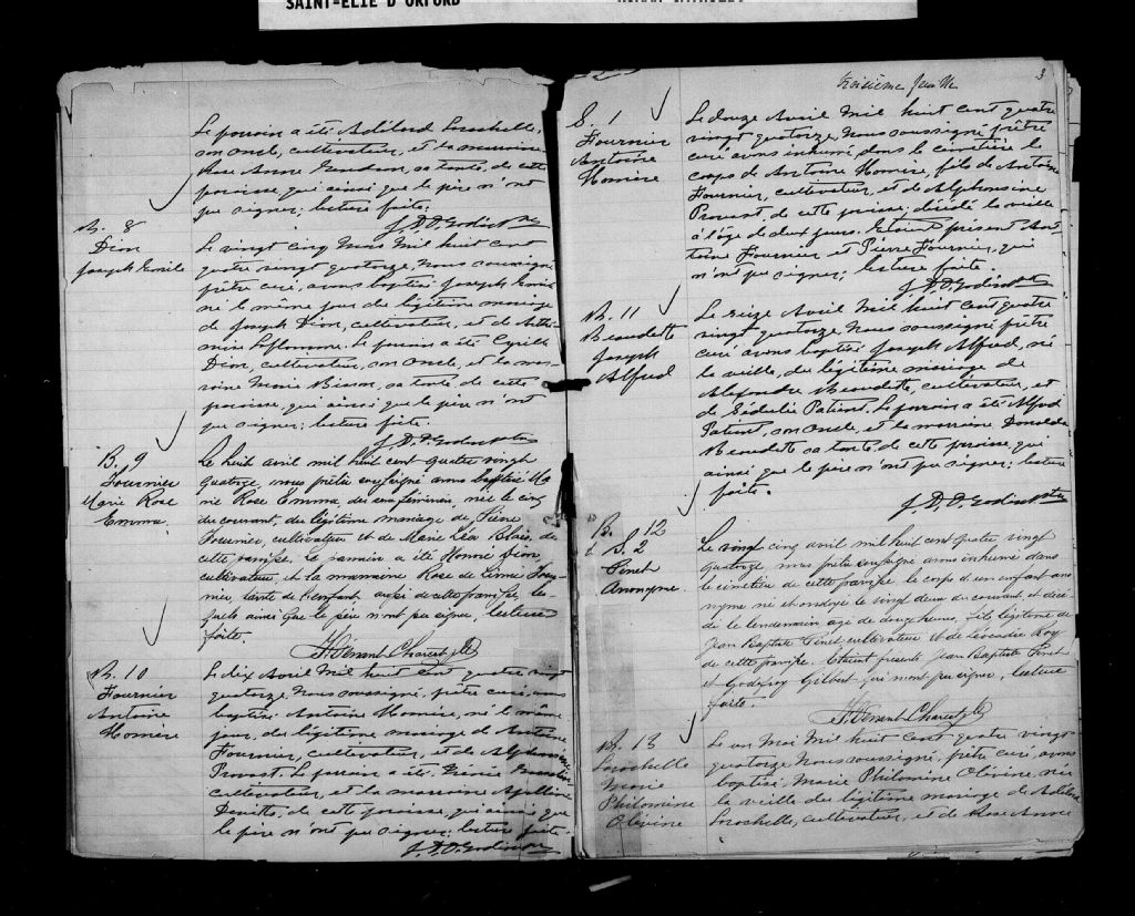 Saint-Élie d'Orford, 1887-1921, Archives nationales à Sherbrooke, Fonds Cour supérieure. District judiciaire de Saint-François. État civil, (05S,CE501,S102).