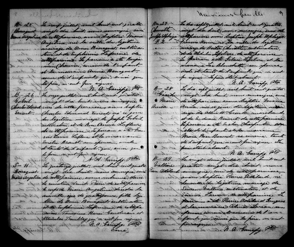 - Cette série regroupe les registres originaux de l'état civil, lesquels contiennent les enregistrements de baptêmes, de mariages et de sépultures consignés par le curé ou son représentant desservant la communauté de confession catholique de la paroisse Saint-Pierre de La Patrie On retrouve également, en règle générale, un index nominatif à la fin de chaque registre.Les registres de 1876 à 1878 comprennent aussi les entrées de Notre-Dame-des-Bois (CE503,S7). Les registres de 1876 à 1882 comprennent aussi les entrées de paroisse La Décollation de Saint-Jean-Baptiste de Chartierville (CE501,S95). Le registre de 1876 comprend aussi les entrées pour la mission Sainte-Famille de Newport (ou d'Island Brook). Les registres de 1886 et 1887 comprennent les entrées pour Saint-Paul de Scotstown (CE501,S109)