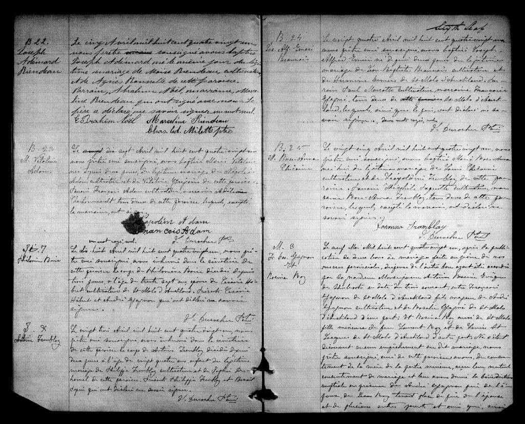 - Cette série regroupe les registres originaux de l'état civil, lesquels contiennent les enregistrements de baptêmes, de mariages et de sépultures consignés par le curé ou son représentant desservant la communauté de confession catholique de la paroisse Saint-Venant. On retrouve également, en règle générale, un index nominatif à la fin de chaque registre.Les registres de 1865 à 1883 comprennent aussi les entrées de Saint-Malo (CE501,S107); celui de 1915 comprend des entrées de Beecher Falls, au Vermont.Pour 1864, voir Saint-Thomas-d¿Aquin de Compton (CE501,S26)