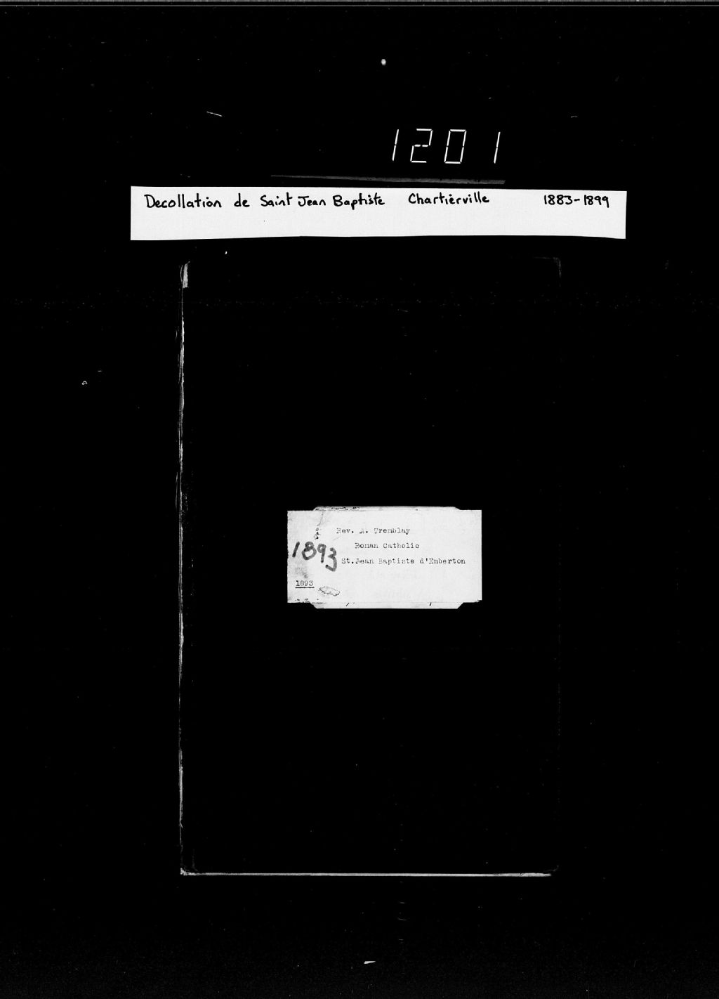 - Cette série regroupe les registres originaux de l'état civil, lesquels contiennent les enregistrements de baptêmes, de mariages et de sépultures consignés par le curé ou son représentant desservant la communauté de confession catholique de la paroisse Décollation-de Saint-Jean-Baptiste de Chartierville. On retrouve également, en règle générale, un index nominatif à la fin de chaque registre.Pour 1876 à 1882, voir Saint-Pierre de La Patrie (CE501,S22). Les indications dans la marge sont habituellement au nom de Saint-Jean-Baptiste d¿Emberton.