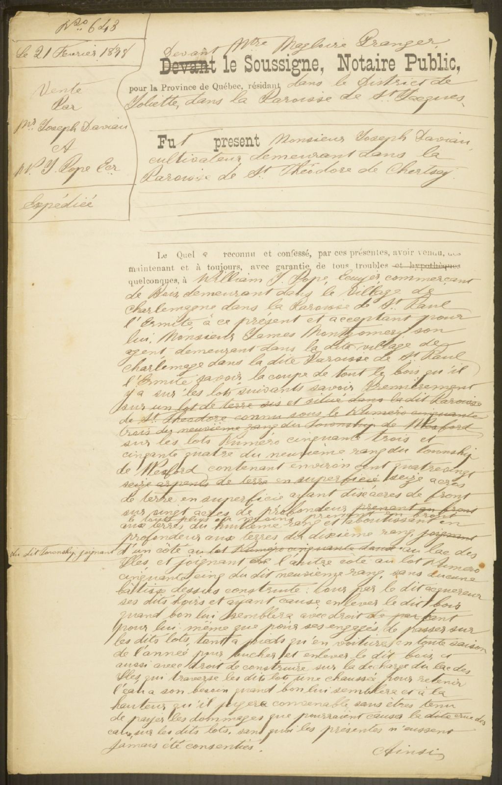 Magloire Granger, 1868-1916, Archives nationales à Montréal, Fonds Cour supérieure. District judiciaire de Joliette. Greffes de notaires, (06M,CN605,S103).