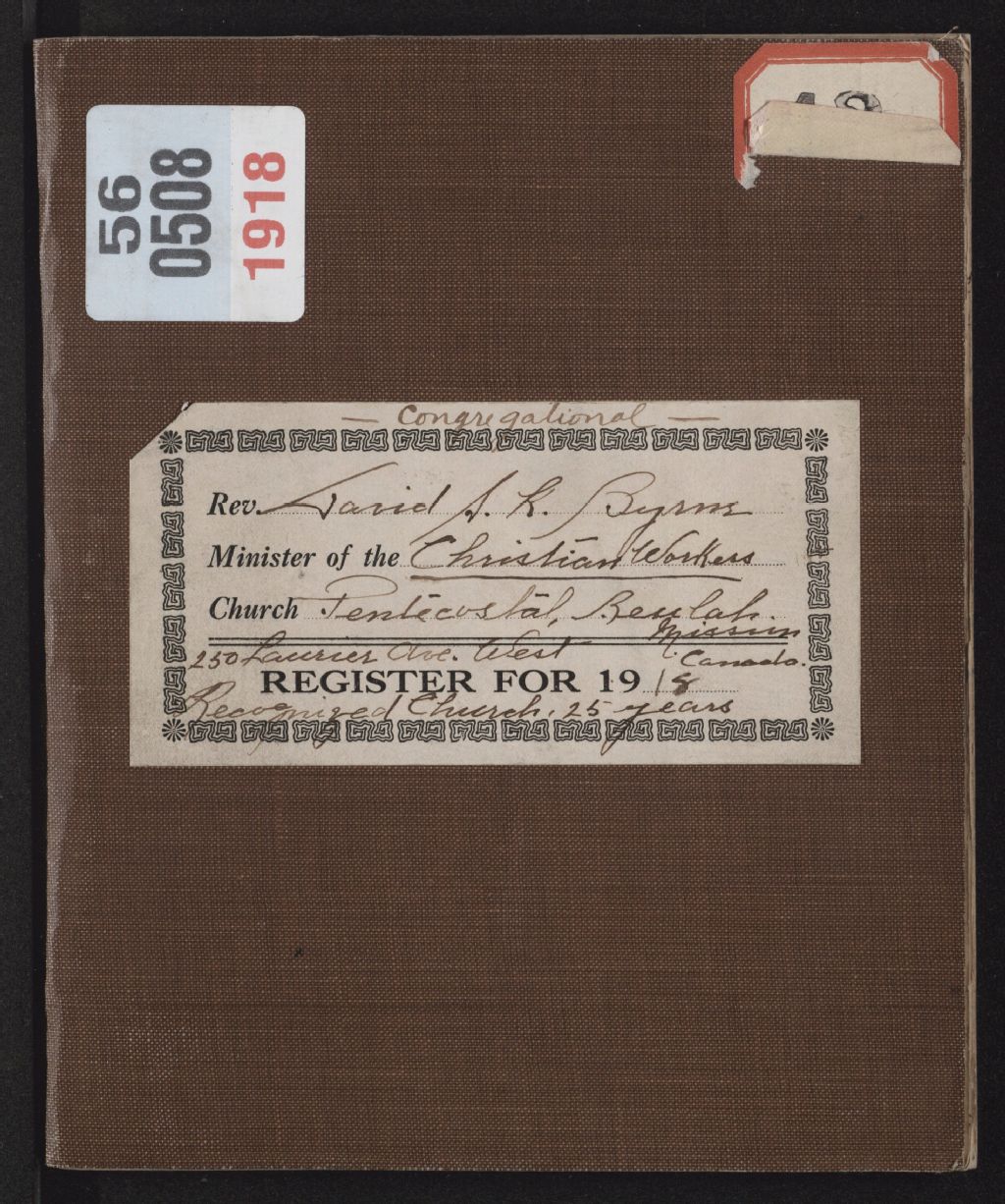 Christian Workers Congregational Church, 1918-1921, Archives nationales à Montréal, Fonds Cour supérieure. District judiciaire de Montréal. État civil, (06M,CE601,S370).