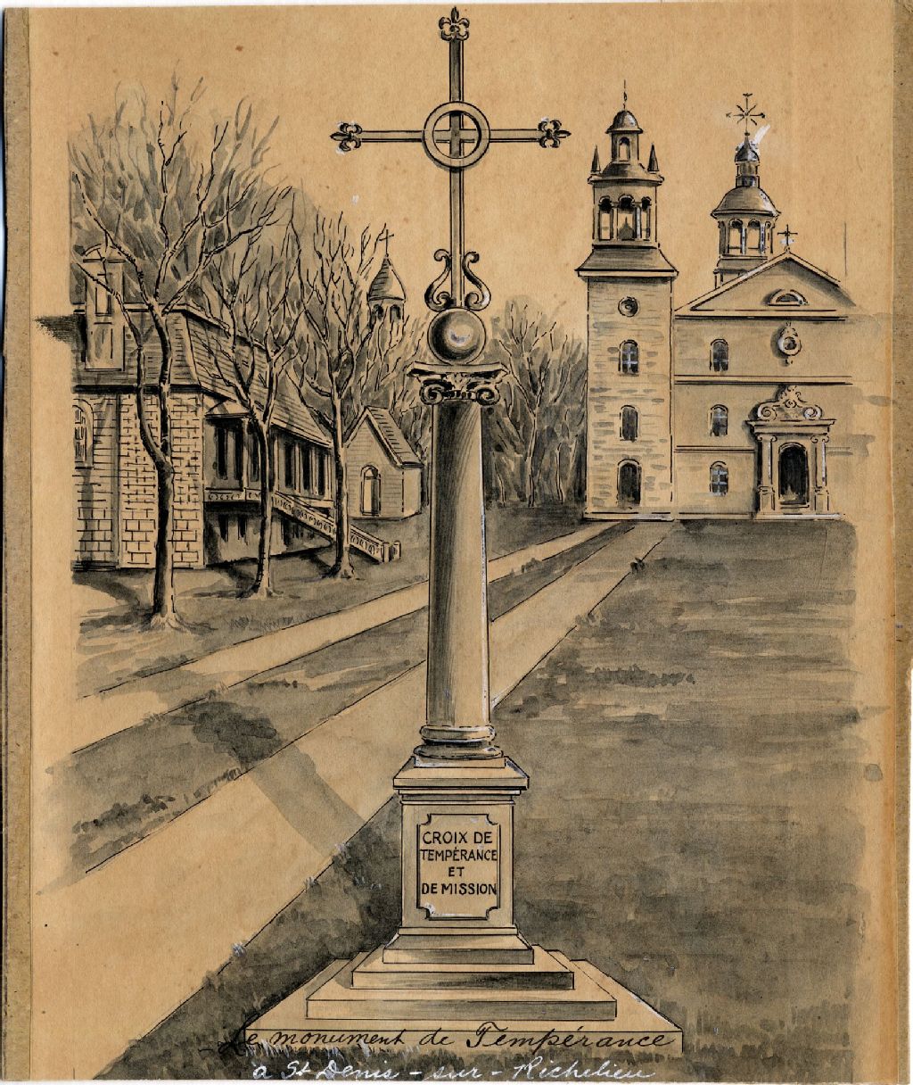 Le monument de la tempérance à Saint-Denis-sur-Richelieu, [vers 1930], Archives nationales à Québec, Collection initiale, (03Q,P600,S5,PDEC56), Photographe non identifié.