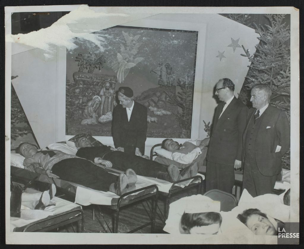 - Le dossier porte notamment sur la 2ième clinique du maire à l¿Hôtel de ville, de Montréal, où l¿on voit des donneurs de sang, dans le hall d¿honneur. Les photographies illustrent notamment le maire de Montréal, Jean Drapeau et le joueur de hockey Maurice Richard
