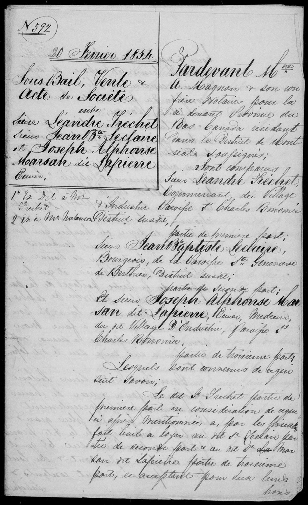 Adolphe Magnan, 1850-1896, Archives nationales à Montréal, Fonds Cour supérieure. District judiciaire de Joliette. Greffes de notaires, (06M,CN605,S75).