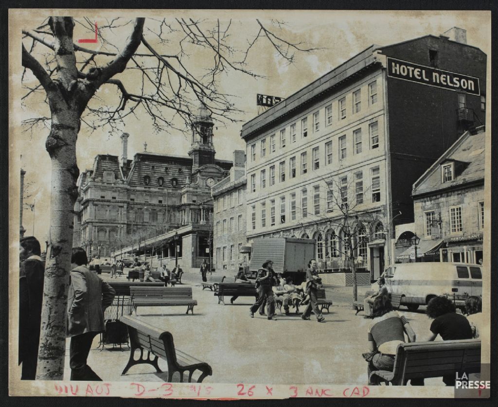 - La photographie illustre l¿hôtel Nelson, construit en 1865, il portait autrefois le nom d'Hôtel Jacques-Cartier, jusqu¿ en 1941, après la restauration du bâtiment, l¿hôtel devient un immeuble de bureaux, en 1986