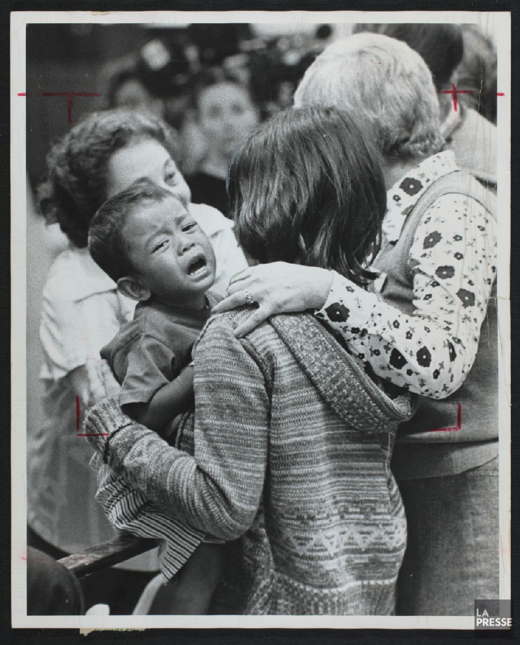 Arrivée d'orphelins vietnamiens et cambodgiens à Dorval, 6 avril 1975, Archives nationales à Montréal, Fonds La Presse, (06M,P833,S4,D1016), Jean Goupil.